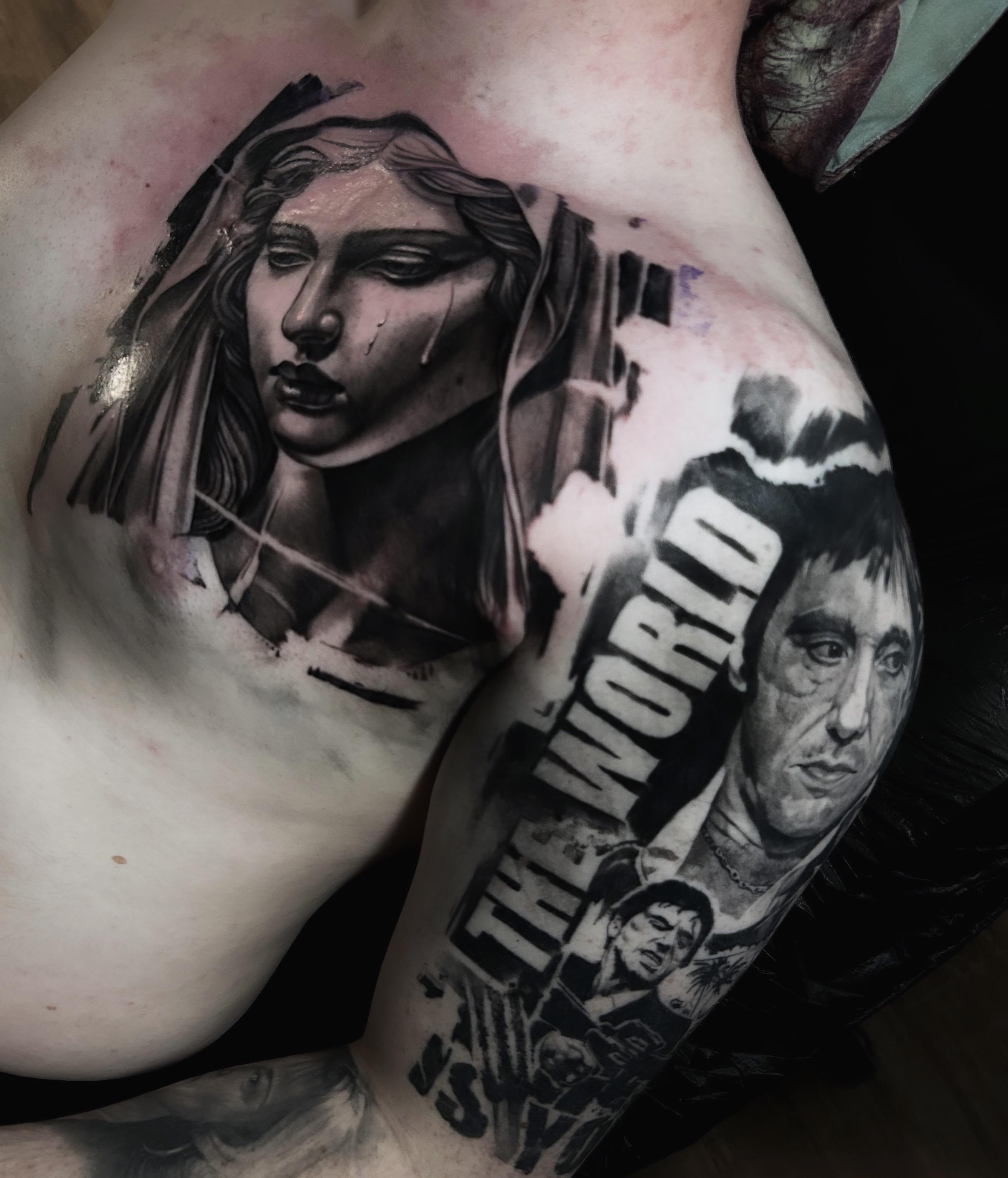 Hi, ich bin Constantin, seit vielen Jahren Tätowierer – und mein Herz schlägt ganz besonders für realistische Porträt-Tattoos. Ob geliebter Mensch, Lieblingsstar, Haustier oder ein anderes Motiv, das dir persönlich viel bedeutet – ich bringe es mit Nadel, Farbe und viel Feingefühl unter deine Haut. Seit über 15 Jahren vereine ich handwerkliches und künstlerisches Können, um dir einzigartige Tattoos zu kreieren, die unter die Haut gehen – im wahrsten Sinne.